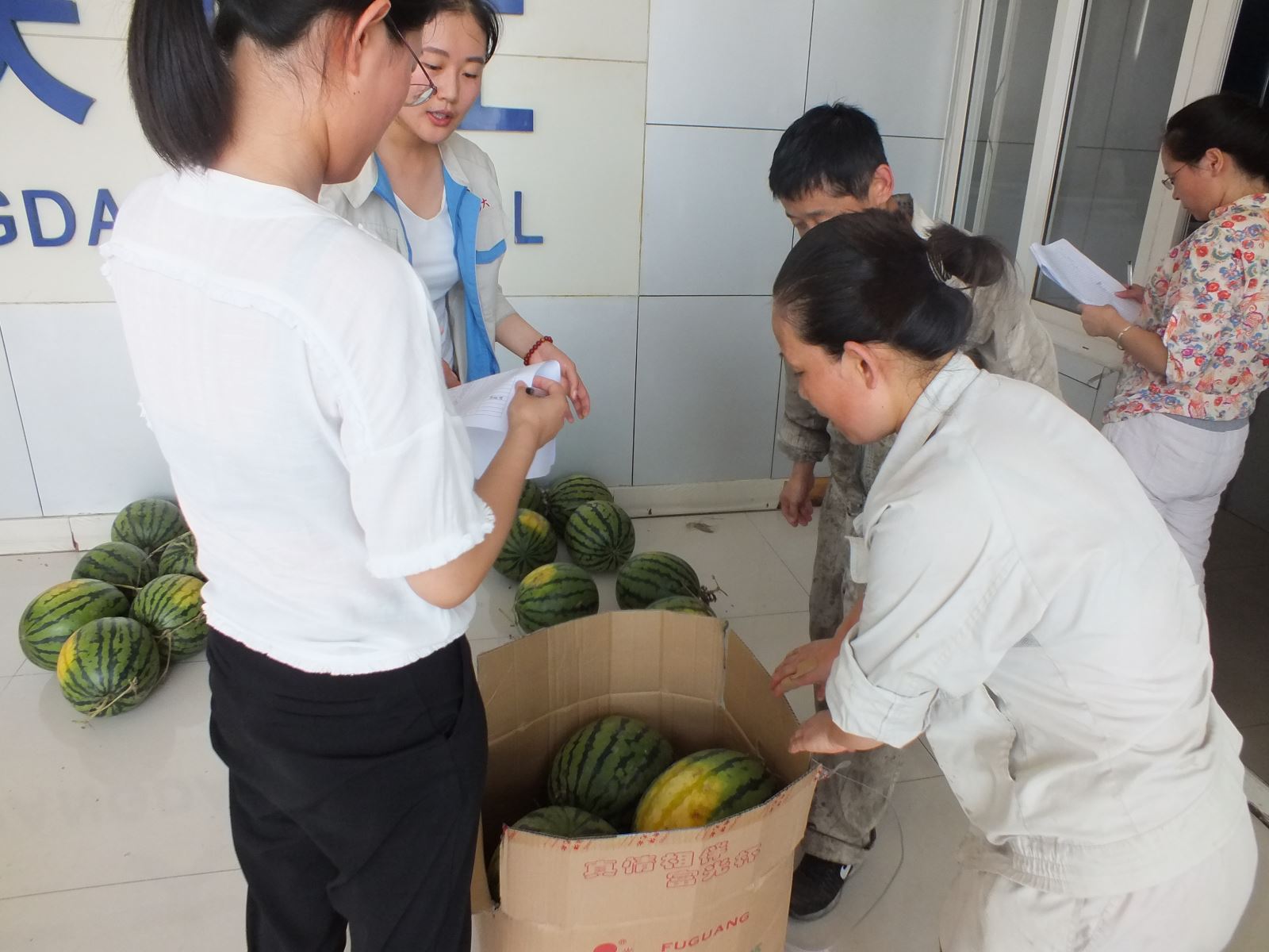 拿起手中的西瓜,每一位員工的臉上都綻放了幸福的笑容,一塊看似不起眼的西瓜,卻因?yàn)檫@里面蘊(yùn)含著愛(ài)的溫度,讓他們忘記了炎熱與勞累,而那一張張笑臉也是對(duì)我們此次慰問(wèn)活動(dòng)最大的肯定!