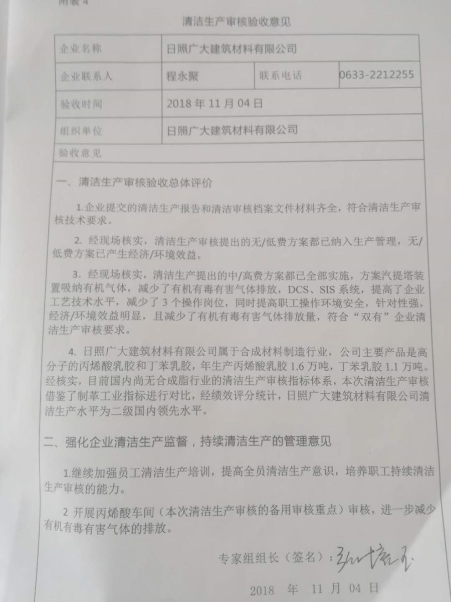 日照廣大建筑材料有限公司,位于風(fēng)景秀麗的海濱城市山東日照,成立于1988年,是專(zhuān)業(yè)生產(chǎn)高分子化工產(chǎn)品,集科研開(kāi)發(fā)、生產(chǎn)經(jīng)營(yíng)為一體的化工企業(yè),主要產(chǎn)品為丙烯酸脂類(lèi)乳液和丁苯膠乳。是國(guó)內(nèi)目前江北同行業(yè)產(chǎn)銷(xiāo)量最大企業(yè)之一。
