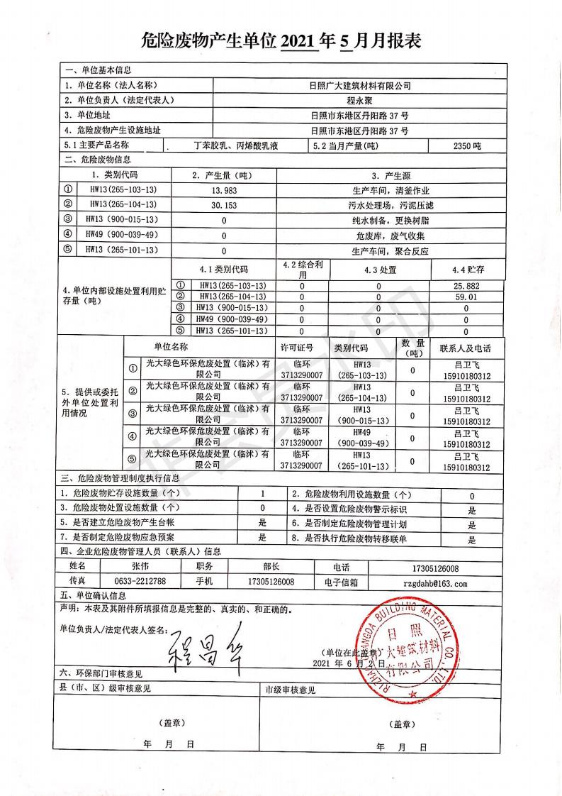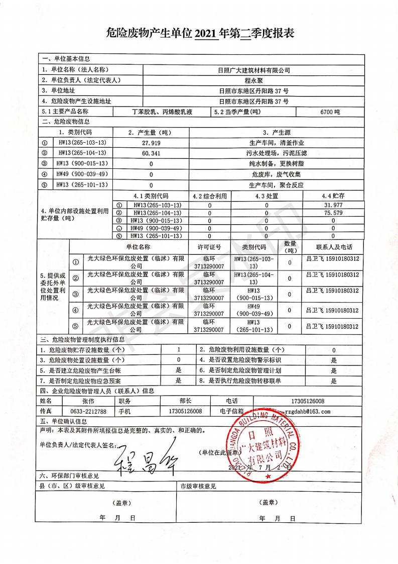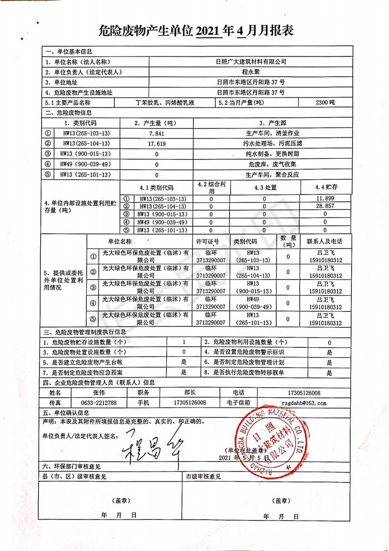 日照廣大建筑材料有限公司,位于風(fēng)景秀麗的海濱城市山東日照,成立于1988年,是專業(yè)生產(chǎn)高分子化工產(chǎn)品,集科研開發(fā)、生產(chǎn)經(jīng)營為一體的化工企業(yè),主要產(chǎn)品為丙烯酸脂類乳液和丁苯膠乳。是國內(nèi)目前江北同行業(yè)產(chǎn)銷量最大企業(yè)之一。